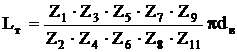 где Z1 - заходность червяка; Z3, Z4, Z5, Z6 - число зубьев сменных шестерен; dв - диаметр вальяна, см (dв = 16 см).