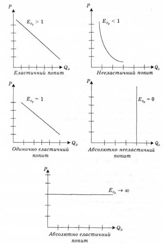 Якщо нескінченно мала зміна ціни призводить до нескінченного зростання обсягу попиту, існує абсолютно еластичний попит (Еп ->оо). Цінова еластичність впливає на обсяг доходу (виручки від реалізації), який визначається як добуток ціни за одиницю товару на кількість проданого товару. Для еластичного попиту зменшення ціни на 1 % викликає значніше зростання обсягу попиту (продажу), тому доходи від продажу зростають. Для нееластичного попиту зменшення ціни на 1 % спричиняє зростання попиту менше, ніж на 1 %, тому загальний дохід від продажу зменшується. Для одинично еластичного попиту зміна ціни зумовлює абсолютно однакову зміну попиту, тому загальний дохід від реалізації залишається незмінним На дві останні ситуації - абсолютно нееластичного й абсолютно еластичного попиту - закон попиту не поширюється. Ці крайнощі мають не так практичне, як теоретичне значення, хоча подекуди має місце абсолютно нееластичний попит. Прикладом може служити інсулін для інсулінозалежних хворих на діабет або антиастматичні препарати для астматиків. Тобто йдеться про товари" які мають винятково важливе значення для забезпечення життєдіяльності, ціна на які не обмежує попит. Його може обмежувати лише рівень доходу споживача. Значно складніше навести приклад абсолютно еластичного попиту. Економічна теорія описує і таку ситуацію, коли зменшення ціни призводить до скорочення попиту на товар, а збільшення ціни - до його зростання. Така ситуація називається ефектом Р. Гіффена, а товари, попит на які реагує на зміну ціни, - товарами Р. Гіффена (англійський економіст Р. Гіффен вперше дослідив цей ефект). Крива попиту для товарів Р. Гіффена мала б не від'ємний, а додатний нахил. Для того щоб описати вплив чинників на еластичність попиту за ціною, слід розглянути структуру товарів за їхньою чутливістю до змін ціни. Для цього із загальної маси товарів треба виділити взаємозамінні товари (товари-субститути) і взаємодоповнюючі товари (товари-комплементи). Взаємозамінні товари - це товари, які здатні задовольняти одну й ту саму потребу незалежно один від одного. (Наприклад, потребу в жирах можна задовольнити або соняшниковою олією, або маргарином.) Взаємодоповнюючі товари - це такі товари, споживання одного з яких обов'язково потребує споживання інших. (Наприклад, використання корисних властивостей автомобіля неможливе без використання мастил, бензину, гальмівної рідини тощо.) Товари-субститути і товари-комплементи по-різному реагують ва зміну цін свого парного товару. Для товарів-субститутів зростання ціни одного товару зумовлює зростання обсягу попиту на інший (парний) товар. Зростання ціни на олію приведе до збільшення споживання маргарину. Для товарів-комплементів зростання ціни одного товару супроводжується спадом попиту на інший (споріднений) товар. Зростання ціни на бензин змусить власника автомобіля менше ним користуватися, а також споживати менше не тільки бензину, а й мастил та інших споріднених товарів. Фактори, що впливають на цінову еластичність попиту Значимість товару для споживача. Товари, без яких споживач не може обійтися, нееластичні за ціною. Товари першої необхідності нееластичні, а предмети розкошів - еластичні. Наявність і доступність товарів-субститутів. Чимбільша кількість товарів-субститутів доступна споживачеві, тим еластичнішим 