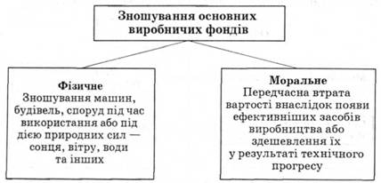 Моральне зношування основних фондів — це передчасна втрата ними їхньої вартості внаслідок появи ефективніших засобів виробництва аналогічного призначення, або здешевлення їх у результаті технічного прогресу. Відчислення на заміщення вартості зношеної частини основних фондів називають амортизаційними відрахуваннями. З них утворюється фонд амортизації. Амортизаційні відрахування можуть не збігатися з фактичним зношуванням. Відсоток, який відраховується для заміщення зношеної частини основних фондів називається нормою амортизації. Вона встановлюється в законодавчому порядку. Високі темпи науково-технічного прогресу прискорюють моральне зношування основних фондів і ведуть до того, що держава збільшує норму амортизації. Це дає змогу швидше списувати морально зношені засоби праці, а з іншого боку — стимулює інтенсивне використання виробничих фондів. Таким способом здійснюється політика прискореної амортизації. Систематичне і повне завантаження основних виробничих фондів дає змогу збільшити виробництво продукції, підвищити ефективність виробництва і збільшити фондовіддачу, яка є головним показником використання основних виробничих фондів. Вона показує випуск продукції, що припадає на одну грошову одиницю виробничих фондів і визначається як відношення вартості виготовленої продукції до вартості основних виробничих фондів. Збільшення фондовіддачі залежить від таких чинників: 1) повноти залучення у виробничий процес машин і устаткування; 2) зростання коефіцієнта змінності; 3) ліквідації простоїв; 4) скорочення строків освоєння нових виробничих потужностей. Оборотні виробничі фонди — це предмети праці, які повністю споживаються в кожному виробничому циклі, відразу повністю переносять свою вартість на створювану продукцію і в процесі виробництва змінюють натуральну форму. Вони включають сировину і матеріали, паливо і пальне, запасні частини для ремонту, куповані матеріали, тару і тарні матеріали, малоцінні матеріали та інструменти, незавершене виробництво та напівфабрикати власного виробництва. Оборотні виробничі фонди і фонди обігу (готова продукція і грошові кошти) в сукупності становлять оборотні засоби. Для оцінки й аналізу використання оборотних виробничих фондів використовується показник матеріаломісткості. Матеріаломісткість найповніше відображає ефективність використання оборотних фондів у поєднанні з технічним рівнем виробництва. Вона обчислюється як відношення вартості спожитих матеріальних ресурсів до вартості продукції.