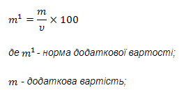Матеріальну основу додаткової вартості складає додатковий продукт, який являє частину суспільного продукту, створюваного безпосередніми виробниками понад необхідний продукт. Необхідний продукт - це та частина створеного безпосередньо працівниками суспільного продукту, яка використовується ними та членами їхніх сімей для відтворення своїх фізичних і духовних можливостей до праці за наявних соціально-економічних умов. Розміри необхідного продукту визначають величину додаткового і їх співвідношення у складі сукупного суспільного продукту. Додатковий продукт виникає в період розпаду первіснообщинного ладу у зв'язку зі зростанням продуктивності праці і появою можливості використовувати частину часу праці для збільшення обсягів виробництва порівняно з попереднім періодом. В цьому розумінні додатковий продукт притаманний усім способам виробництва, які виникли після первіснообщинного ладу. Він являє собою результат розвитку продуктивної виробничої діяльності людини і належить до її специфічних рис. Додатковий продукт став реальним явищем виробничої діяльності людини тоді, коли вона почала створювати своєю працею більше матеріальних і духовних благ, ніж їй було необхідно для власного відтворення як працівника й особистості. Додатковому продукту належить особлива роль у розвитку людського суспільства. Адже соціально-економічний розвиток суспільства, науково-технічний прогрес, добробут населення залежать від кількісних і якісних характеристик додаткового продукту. Всі свої здібності, енергію та зусилля люди спрямовували і спрямовують на виробництво і привласнення додаткового продукту. Історію розвитку людської цивілізації можна розглядати як розвиток форм виробництва і розподілу додаткового продукту. Підприємницька діяльність держави, окремих осіб, їх об'єднань організовується і здійснюється лише з метою виробництва та привласнення додаткового продукту в тій чи іншій формі. Без цих складових процесу суспільного виробництва воно не буде існувати та розвиватись, не буде і підприємницької діяльності. Відповідно до теорії додаткової вартості К. Маркса грошове вираження додаткового продукту при капіталізмі - це неоплачена праця трудівника, або додаткова вартість. Вона є складовою новоствореної вартості (v + m) і продуктом тільки живої праці. Якщо постійний капітал не створює приросту вартості, то при визначенні величини додаткової вартості її можна прирівняти до нуля. Тоді можна виміряти її абсолютно і оцінити відносно. Відносну оцінку додаткової вартості, тобто відношення додаткової вартості до змінного капіталу, виражене в процентах, К. Маркс назвав нормою додаткової вартості, або рівнем експлуатації робочої сили. Вона розраховується за формулою: