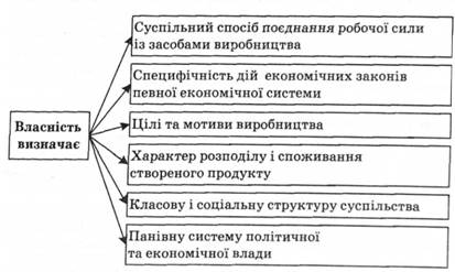 Вивчення будь-якої економічної моделі завжди пов’язане з вирішенням питання про власність: кому належить економічна влада, хто розпоряджається суспільним багатством. Суть цієї влади полягає в характері привласнення засобів виробництва і його результатів. Власність – це сукупність відносин між людьми з приводу привласнення або відчуження об'єктів власності. Це складна економічна категорія, розрізняють економічний і юридичний аспекти власності. Економічна власність – це відносини з приводу володіння та використання факторів виробництва та результатів їх функціонування. Об'єктом юридичної власності може бути будь-яке майно: особисте майно, засоби виробництва, різні цінності, майно і кошти громадян, підприємств, держави. Економічна теорія вивчає економічний аспект власності. Об'єктом економічної власності є фактори виробництва, тобто те, що забезпечує власнику зростання вартості. Отже, об'єктами економічної власності є: - робоча сила; - засоби виробництва; - продукти праці. Суб'єктами економічної власності є: - особа; - група осіб; - держава.