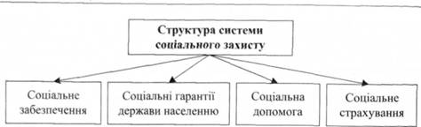 Ринкова економіка сама по собі не може забезпечити справедливий розподіл доходів. Вона приводить до їх диференціації, в результаті чого частина населення опиняється за межею бідності. Цим породжується потреба у соціальному захисті. Соціальний захист населення є комплексом економічних, соціальних та правових заходів і сукупністю інститутів, що забезпечують усім громадянам країні рівні можливості для підтримання певного рівня життя, а також підтримку окремих соціальних груп населення. Це комплекс законодавчо закріплених гарантій, що протидіють дестабілізуючим факторам. Соціальна захищеність включає систему заходів, що захищають будь-якого громадянина країни від економічної та соціальної деградації в результаті безробіття, хвороби, виробничої травми, народження дитини, інвалідності, старості тощо, а також надання медичних послуг та допомог сім'ям з дітьми. Потреба у соціальному захисті зумовлюється природою ринкової економіки. Ринок не в змозі забезпечити своїм суб'єктам гарантований дохід і зайнятість. Цілий комплекс факторів зумовлює суттєві відмінності у рівні доходів, стані здоров'я, обсягу задоволення потреб. Зменшити негативний вплив таких факторів на рівень життя певних прошарків населення і покликаний соціальний захист. Це призначення виконується через дві його функції - лікувальну і запобіжну. Лікувальна функція пов'язана із запровадженням механізмів боротьби з бідністю, що передбачають адресну допомогу малозабезпеченим верствам населення, надання житлових субсидій, допомоги сім'ям з дітьми тощо. Ці заходи, по суті, лікують певні групи людей, становище яких можна охарактеризувати як хворобу бідності. Запобіжна функція соціального захисту є превентивною, тобто пов'язана з попередженням бідності шляхом надання індивідам можливості під час свого періоду активної економічної діяльності здобути право на забезпечення собі нормального рівня життя у разі втрати роботи та працездатності, хвороби, нещасного випадку. Система соціального захисту включає три суб'єкти: державу, юридичні особи і громадян. Частина її заходів стосується усіх членів суспільства, а решта адресована окремим соціальним групам. Перша група заходів стосується забезпечення можливості для кожної особи застосування своїх здібностей і отримання доходу, визначення офіційного прожиткового мінімуму, захисту інтересів споживачів, індексації доходів. Друга група заходів соціального захисту стосується окремих груп населення, зокрема безробітних, пенсіонерів, інвалідів, ветеранів праці та військової служби, сімей з дітьми, дітей-сиріт, вимушених переселенців та біженців, що зазнали впливу катастроф (повінь, землетрус, засуха тощо). Система соціального захисту грунтується на таких принципах, як всезагальність, доступність, різноманітність видів забезпечення, адекватність рівню розвитку економіки країни. Соціальне забезпечення - це система забезпечення непрацездатних громадян та осіб похилого віку. Воно призначене захищати пра ва працездатних та непрацездатних у таких питаннях, як пенсійне забезпечення, надання допомоги на випадок тимчасової непрацездатності, надання допомоги матерям та сім'ям з дітьми, на випадок безробіття та інвалідам. Право на соціальне забезпечення є конституційним. В Україні воно гарантується Конституцією 