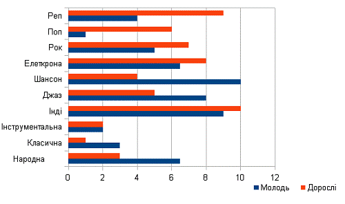 Таблиця Б.16. Статистичні показники переваг щодо стилів музики (дорослі)