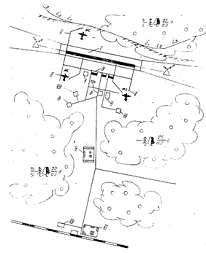 План розміщення на карті (М 1:25000 або М 1:50000) елементів летовища, внутрішньоаеродромних і під'їзних шляхів та основних споруд службово-технічної забудови називається зональною схемою аеродрому.