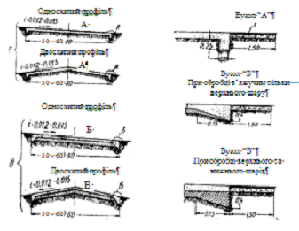 Мінімальні схили грунтової поверхні літної смуги зумовлені необхідністю поверхневого водовідводу. При цьому стік поверхневих вод має забезпечуватися поперечним схилом, який буває односхилим або двосхилим. Мінімальний поперечний схил на грунтових літних смугах рекомендується брати таким, щоб дорівнював 0,005, а на штучних покриттях - 0,008.