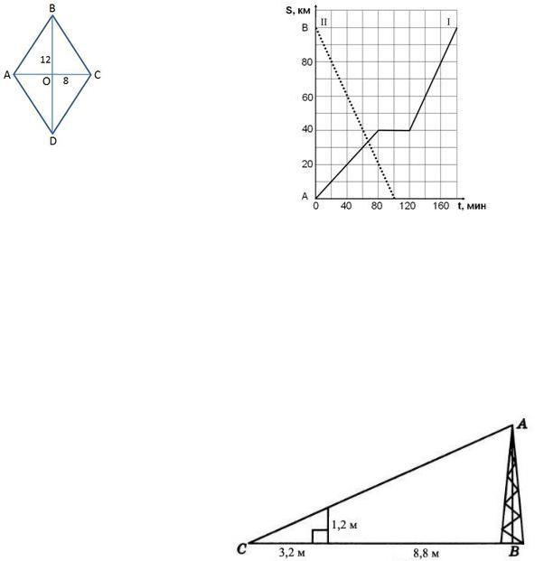 12В ромбе АВСD, изображенном на рисунке, диагонали АС =8, ВD = 12. Найдите площадь ромба.