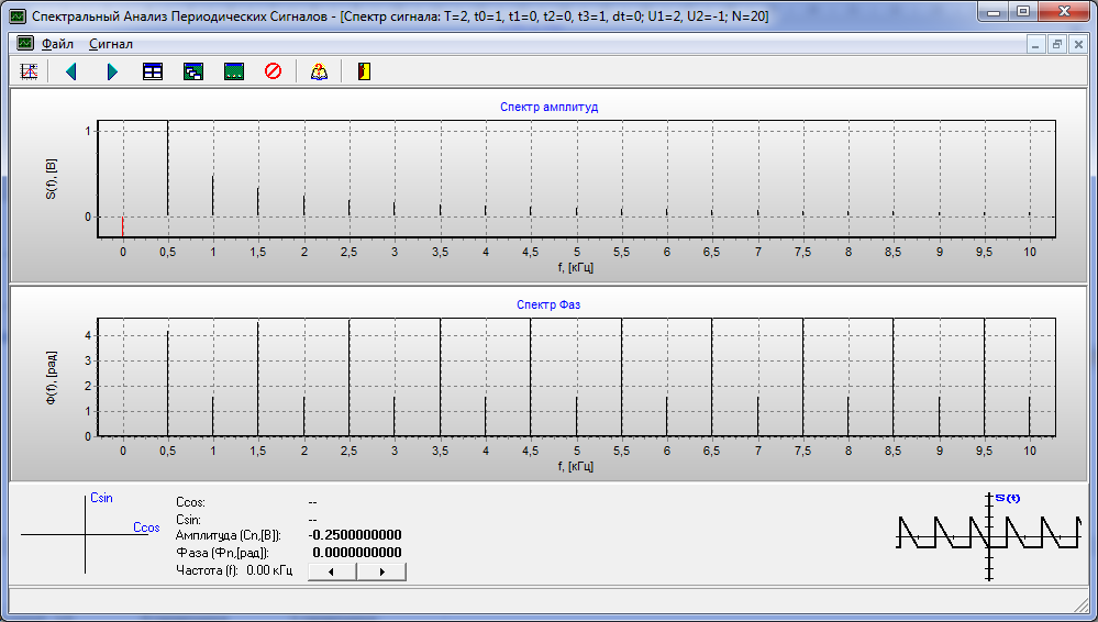 Изучить особенности спектра периодического сигнала. Исследовать закономерности изменения спектра от первичных параметров сигнала.