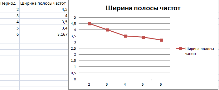 Вывод: При изменение периода ширина полосы частот изменяется обратно экспоненциально.