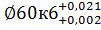 квалитет: Dmin=60,002 мм, Dmax=60,021 мм