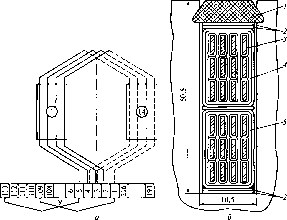 паза: 1 - клин; 2 - прокладка под клин и на дно паза; 3 - медь; 4 - прокладка