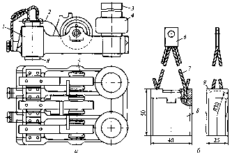 а - щеткодержатель; б - щетка; 1 -