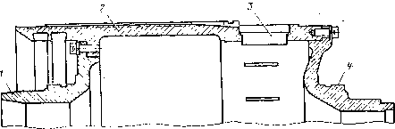 2 - листы сердечника, 3 - передняя нажимная шайба, 4 - изоляционные манжеты