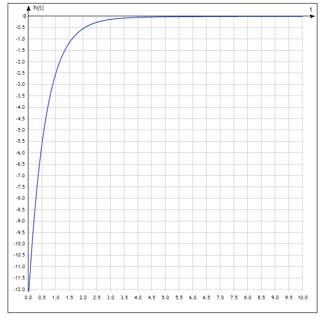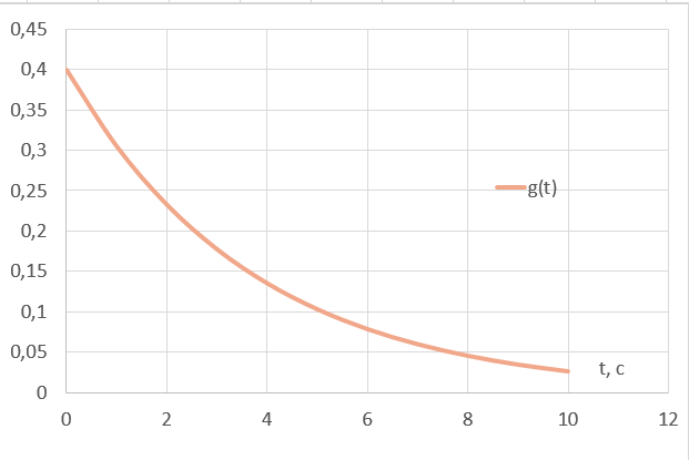 Определим вид переходного процесса. Для этого на вход подадим дельта функцию δ(t). Весовая переходная характеристика в этом случае находится по формуле: