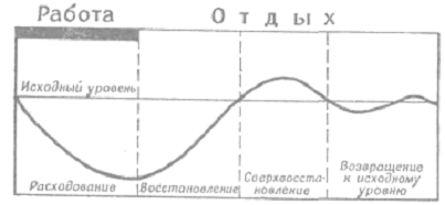 Рис. 2. Различия в тренировочном эффекте при выполнении работы в различные фазы восстановительных процессов: