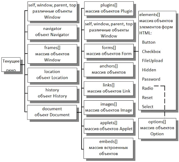Текстовые элементы; Window и все остальные элементы формы (JavaScript 1.1) |