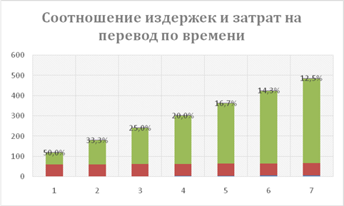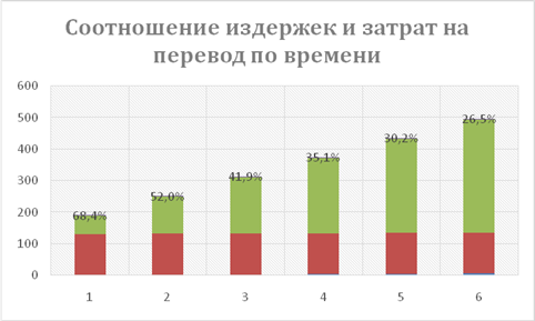 Из формулы (3) получим, что временные затраты выполнение одного переводаравны 190 минут. Из формулы (4) получим, что себестоимость процедуры перевода, не считая заработной платы, составляет 126,4 рублей.