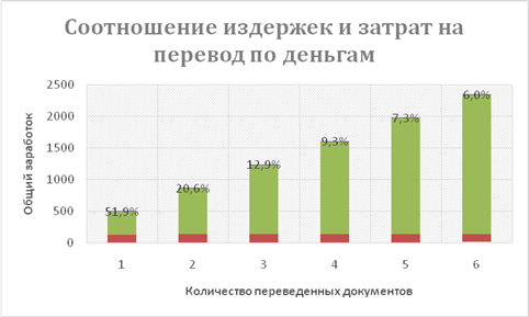 Рисунок 6 – Зависимость денежных издержек от количества переведенных документов