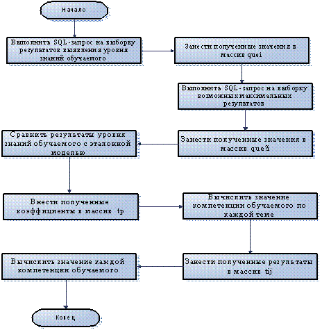 На Рис. 8 показан алгоритм, реализующий метод оценивания текущего уровня компетенции обучаемого.
