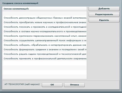 результат выполнения этапа. В окне создания списка целевых компетенций (Рис. 9)