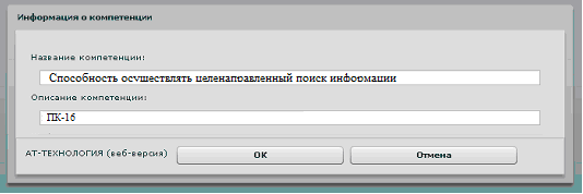 компетенции» возможно редактировать название компетенции, а также ее описание.