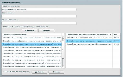 Рис.12. Окно добавления весового коэффициента компетенции
