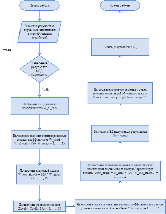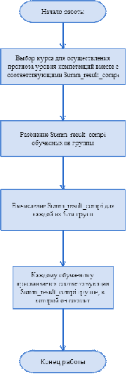 Анализ текущего уровня компетенций обучаемых происходит в несколько этапов, в соответствии с алгоритмом, который подробно описан далее. Блок-схема приведена на рис.13.