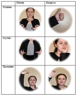 распространённых жестов, которые существуют как в белорусской, так и