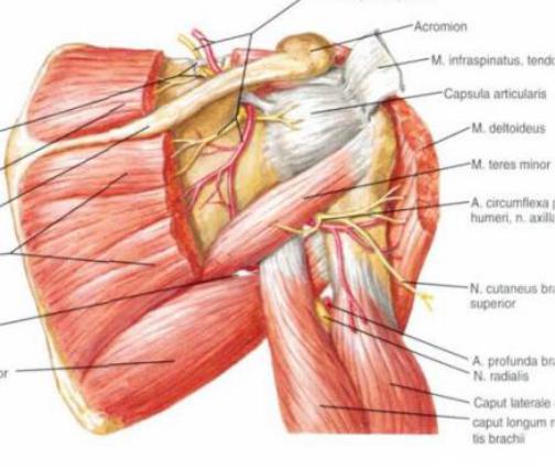 2.A. circumflexa scapulae — ветвь a. subscapularis, идет из подмышечной области через foramen trilaterum в подостное ложе.