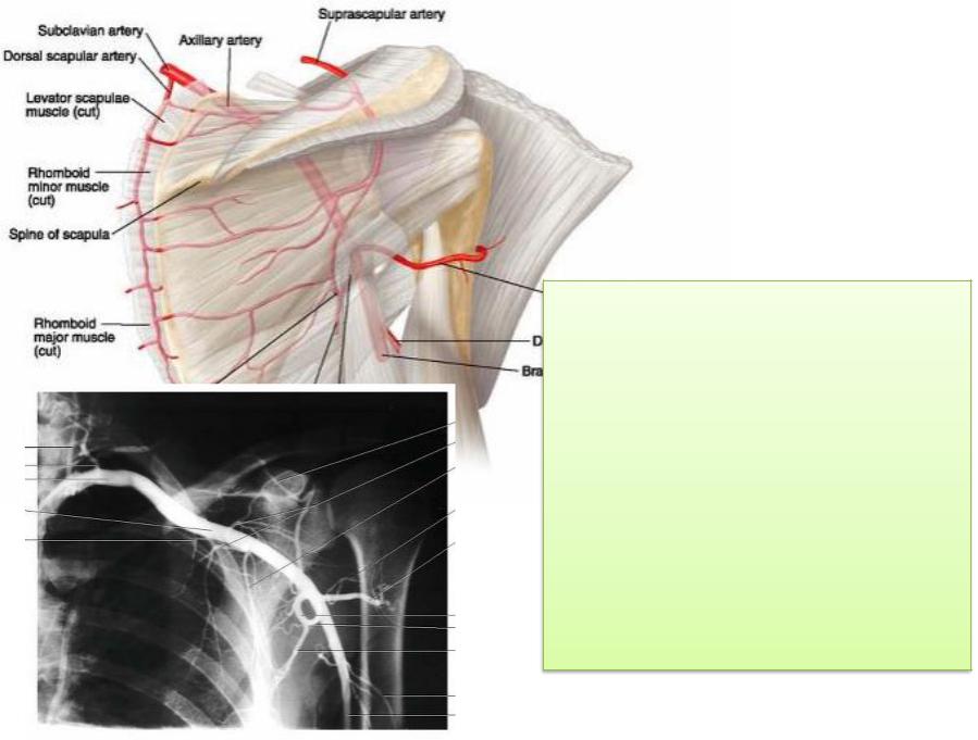 анастомозирует с a. suprascapularis et r. profundus a. transversae colli — анастомоз между системами a. subclavia и a. axillaris
