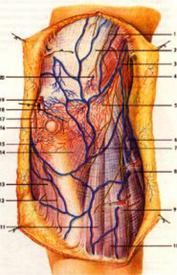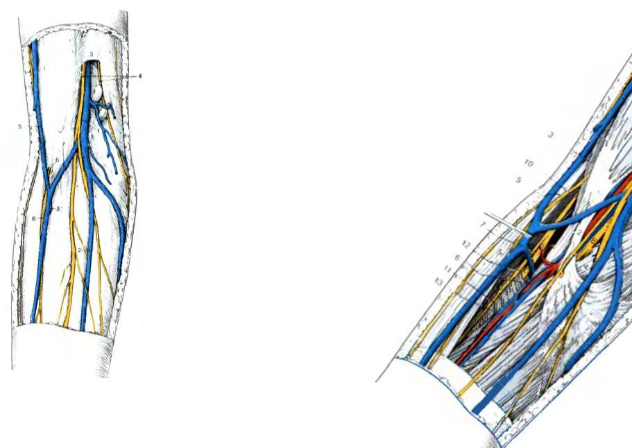 −в нижнем отделе плеча передний фасциальный футляр сообщается с подфасциальной клетчаткой локтевой ямки.