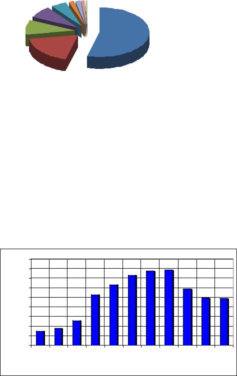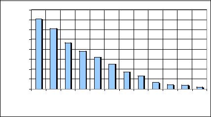 Рисунок 2.5 – Количество водотоков по градациям длины рек (км) в бассейне Верхней Волги