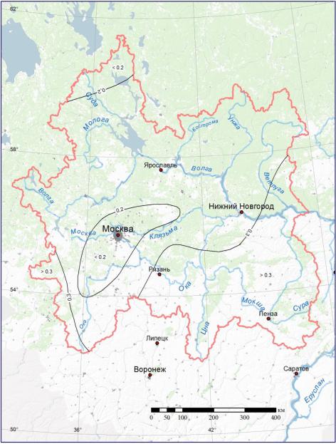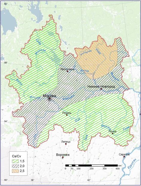 Рисунок 4.4 – Районирование по соотношению Cs/Cv годового стока рек бассейна Верхней Волги