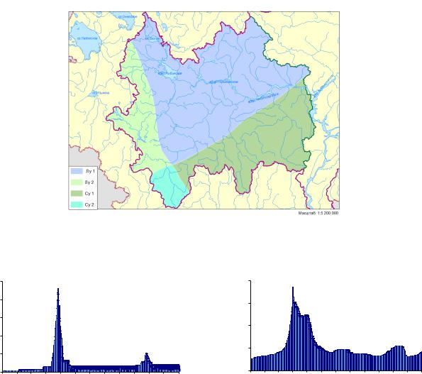 расположенной в лесной зоне (Волго-Онего-Печорский район – Лу1), преобладают реки с пиком весеннего половодья в середине мая и летне-осенними паводками (рисунок 5.2).