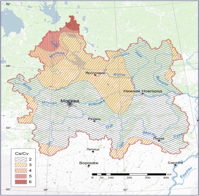 Рисунок 6.4 – Районирование по соотношению Cs/Cv слоя стока весеннего половодья