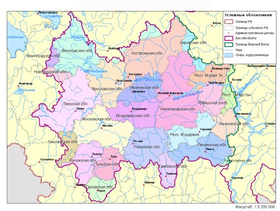 Рисунок 1.1 – Административно-территориальное деление Верхней Волги