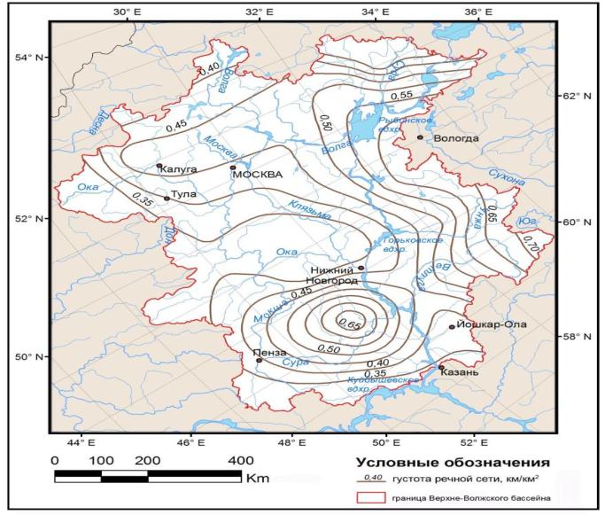 Рисунок 2.1 – Густота речной сети в бассейне Верхней Волги
