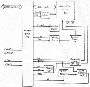Після закінчення адресної частини циклу звернення до каналу активний пристрій встановлює сигнали "К ВИВІДН" і "К БАЙТ Н". Якщо сигнал "КБАЙТ Н" не виробляється, то здійснюється запис 16-ти розрядного слова. У цьому випадку на виходах 6,8 мікросхеми D 9.2 формуються сигнали низького рівня.