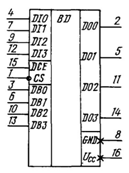 Для управління режимом роботи і напрямом видачі інформації служить схема, виконана на двохвходових логічних елементах. І.Формувачі забезпечують передачу інформації при наявності лог. 0 на вході CS вибірки кристала. При наявності лог. 1 на вході CS формувачі знаходяться у вимкненому стані і виходи мають високий опір (3-е стан). При наявності на вході CS лог. 0 управління видачею інформації по шинах D0 і DB здійснюється сигналом на вході управління видачею інформації DCE. Якщо на вході DCE присутня напруга лог. 0, то відкрита передача інформації з входів DI на виходи DB. При наявності на вході DCE лог. 1 відбувається передача інформації з входів DB на виходи DO.