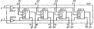 D-тригерів, що мають спільні входи синхронного скидання R і тактового запуску
