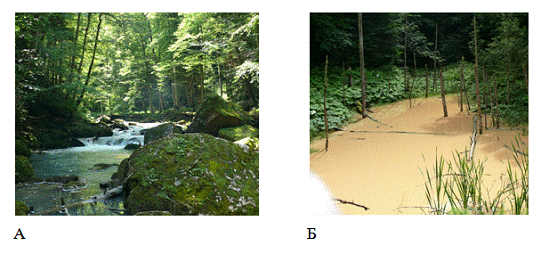 исследований веснянок: А - река Курджипс в месте проведения исследований; Б -