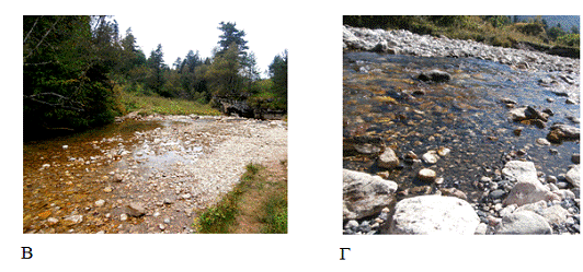 проведения исследований; Г - река Белая в месте проведения исследований (тур.