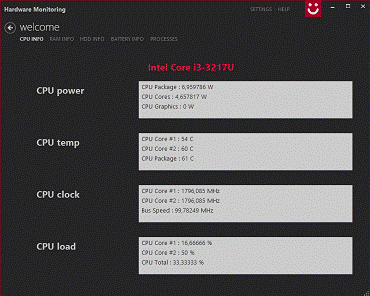 В ходе работы над курсовым проектом был разработан программный продукт для сбора характеристик аппаратного обеспечения. В качестве объектов мониторинга выступают процессор, оперативная память, жесткие диски, батарея. Система позволяет отследить все активные процессы и их модули.