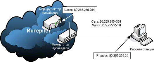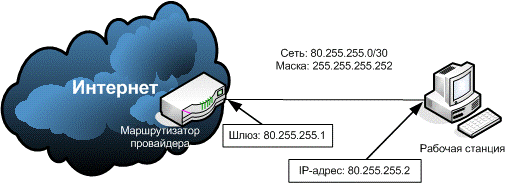 При подключении к Интернет одного компьютера обычно используют один из двух несколько различных вариантов подключения: с выделением подсети из четырех IP-адресов ("связной четверки") или с выделением одного IP-адреса.