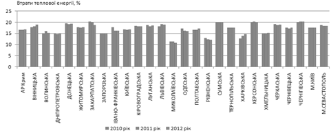 Рис. 1.5. Динаміка втрат теплової енергії в СКТ по областях