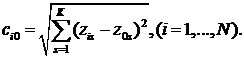 Етап 4. Визначення відстаней між об'єктами та еталоном.