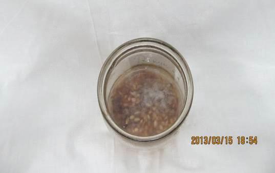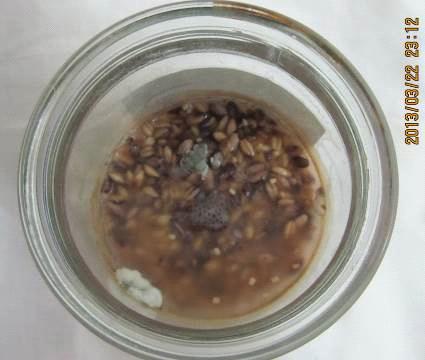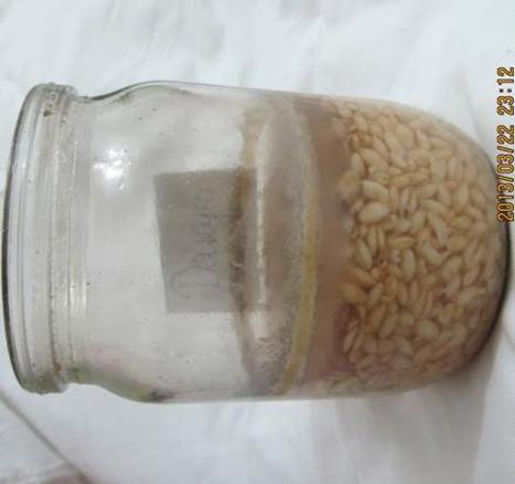 Коментар: у ході досліду спостерігаються явні зміни у кольорі,запаху та консистенції склянок. Тобто запах у ємкості "ти дурень" став різким та неприємним, а в іншій - " спасибі", він був приємний (ніби запах бродіння квасу). Також потрібно не забувати про консистенцію ємкостей, в ємкості з написом "ти дурень" навіть з’явився грибок, і зернятка почорнішали, а в іншій склянці " спасибі" були світлими, лише поодинокі зернятки були трохи фіолетовими!!!