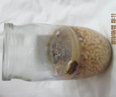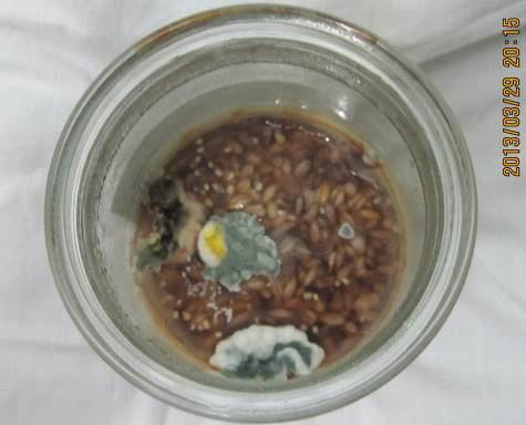 Через місяць, рис, якому говорили " спасибі", заграв, виділяючи насичений приємний запах, схожий на аромат солоду, тоді як рис, який постійно чув лише слова "ти дурень", почорнів і почав гнити. (Див. фото 3.2.)