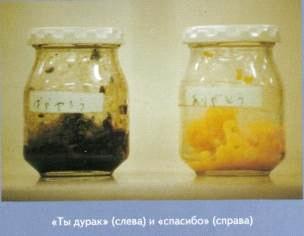 У одній сім'ї, що підписалася на наш журнал, провели цікавий експеримент. Рис помістили в дві скляні ємності, і щодня впродовж місяця рису в одній з них говорили " спасибі", а в іншій - "ти дурень". Що навіть поверталися додому з школи діти проробляли це.
