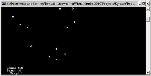 }(wlf==1 && font==1).Y+=1;(hConsole, position);(wlf==2)<< " Зайцы :"<< kol <<"\n";(wlf==1)<< " Волки :"<< kol;(wlf==1)<<"\n Step: " << step;