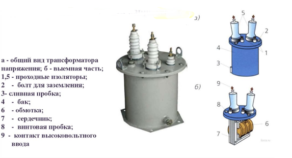 Вимірювальні трансформатори напруги за зовнішнім виглядом і внутрішньою будовою мало відрізняються від силових трансформаторів невеликої потужності.